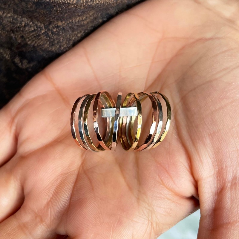 - 3-Metal Mixed Set: Features a curated blend of silver, copper, and brass finish rings—each uniquely crafted with a textured hammered effect.