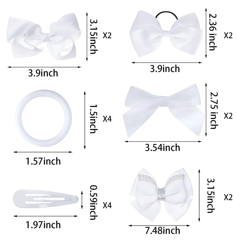 - Package Includes: white girl uniform hair accessories set contains 2 large bow headbands, 2 pairs of adorable bow clips, 1 pair of elegant velvet bow clips, and 2 bow bands for more styling options. You'll also receive 4 simple snap hair clips and 4 elastic hair ties to secure more hairstyle with ease