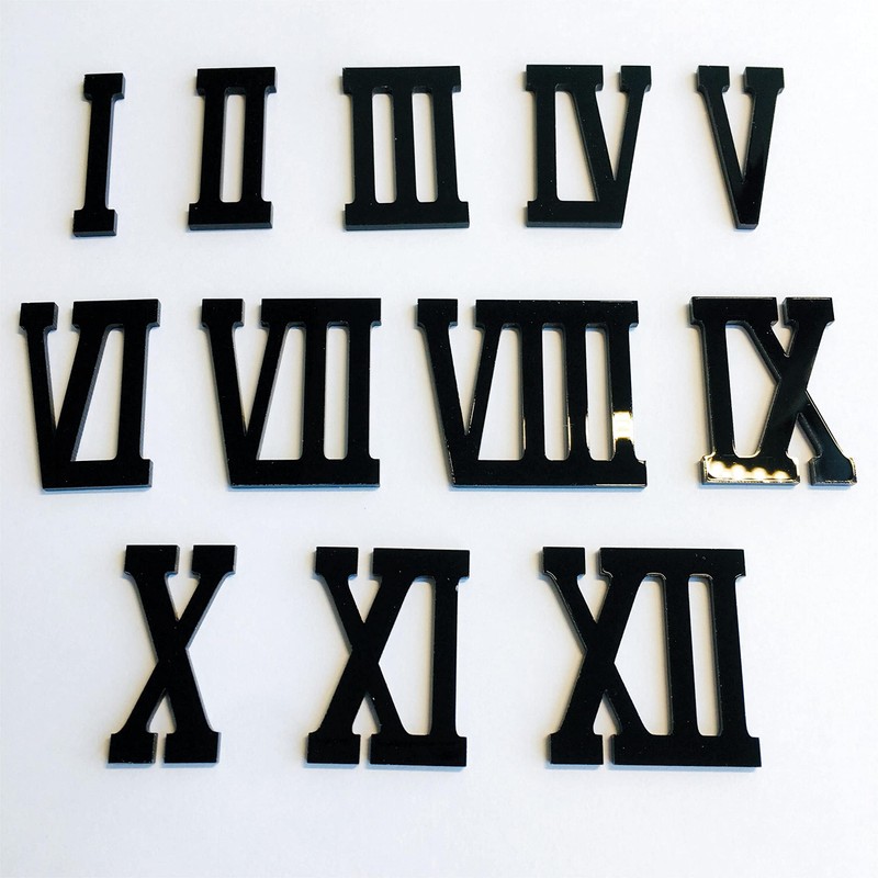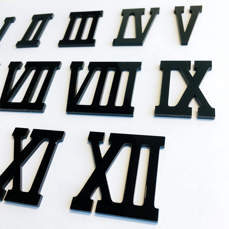 - You will receive a set of 12 pcs Roman shimmering laser cut mirrored acrylic numerals for a wall clock