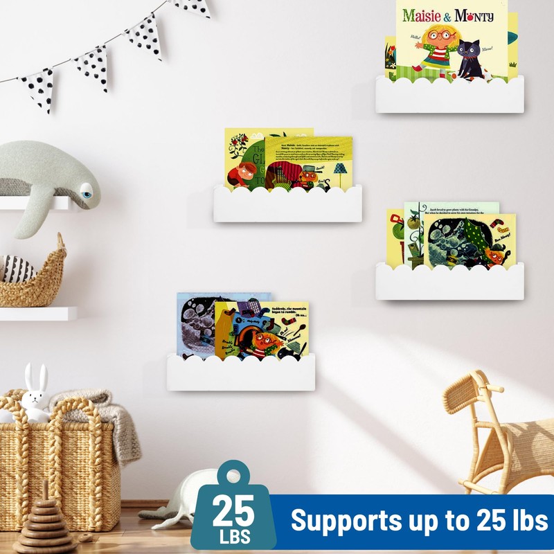 - Ideal Present:These nursery wall bookshelf are both practical and decorative.Give this wall-mounted scalloped wall shelf as a present to your child,which will help to develop good habits from an early age
