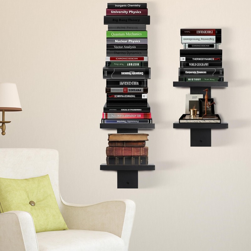 PHOENANCEE Vertical Bookshelf for Wall,Invisible Floating Shelves,2 Tier Spine Bookshelves Tower,Book Tower Stand Organizers Mounted for Home Living Room Office Decor,Preassembled,2 Pack(Black)