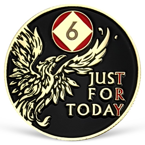 Phoenix 6 Year NA Medallion Just for Today Recovery Chip with Serenity Prayer NA AA Sobriety Coin Six Year Narcotics Anonymous Gifts for Men Women Celebrating Clean and Sober Living