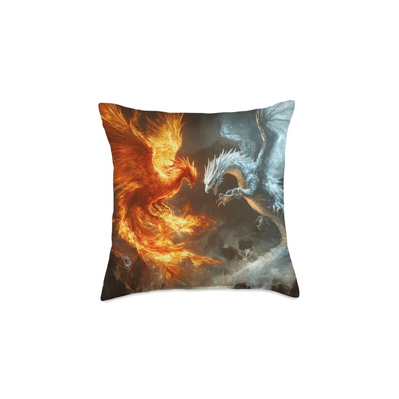 Phoenix and Dragon Confrontation Fantasy Artwork Throw Pillow