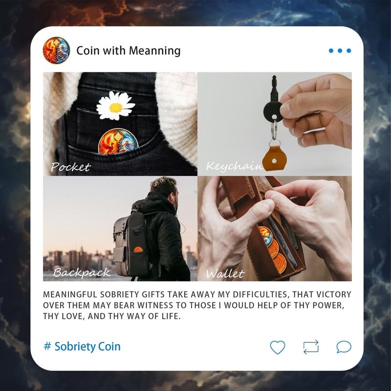 Sober Phoenix: 0 year na medallions feature a beautiful phoenix rising from the ashes, symbolizing rebirth and new beginnings after overcoming the struggles and pain of addiction. This sobriety chip is not only a perfect milestone to celebrate 0 year of sobriety but also a daily reminder and companion in the ongoing journey of recovery.