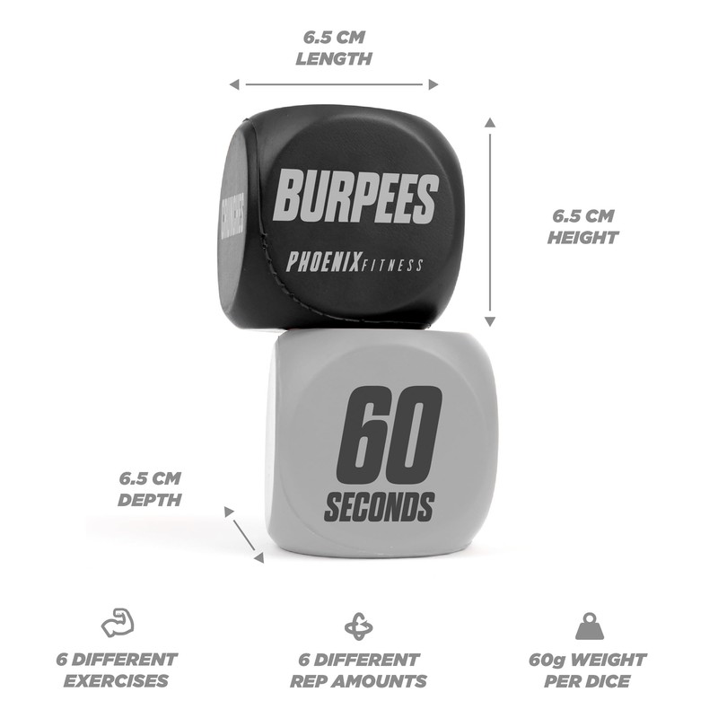 - PHOENIX FITNESS EXERCISE DICE: Our six-sided fitness dice is great for a full body workout, with a range of exercises to work your back, arms, legs and gets your heart pumping!