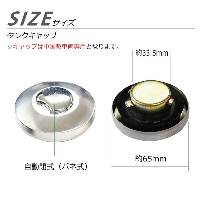 Please note that the inside of the fuel tank cap is approximately 1.3 inches (33.5 mm).