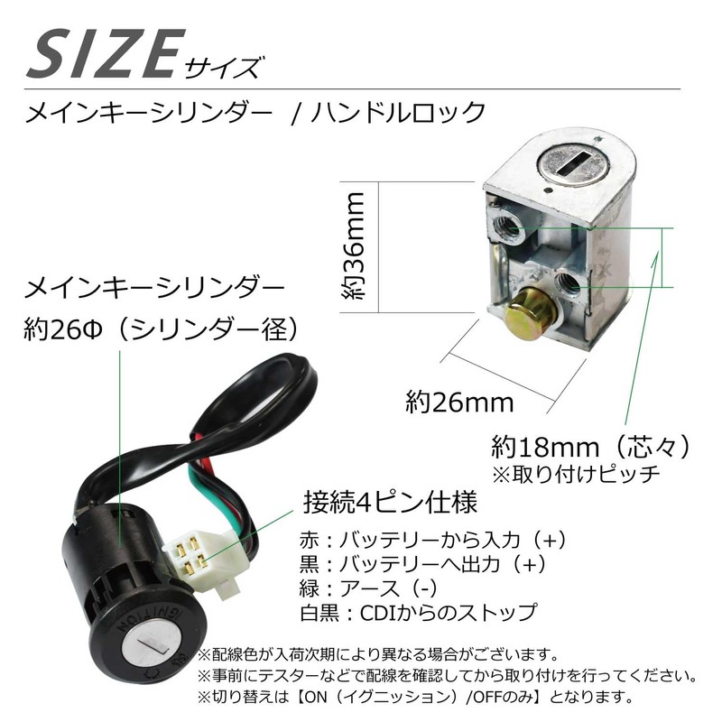 ■ Set Includes: Main key cylinder / handle lock / helmet lock / tank cap / 2 keys