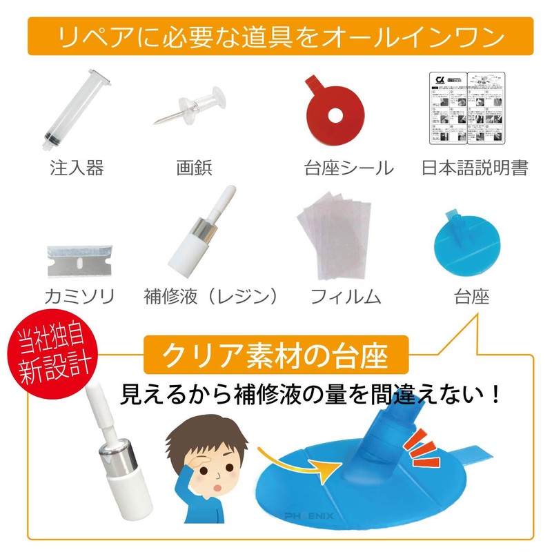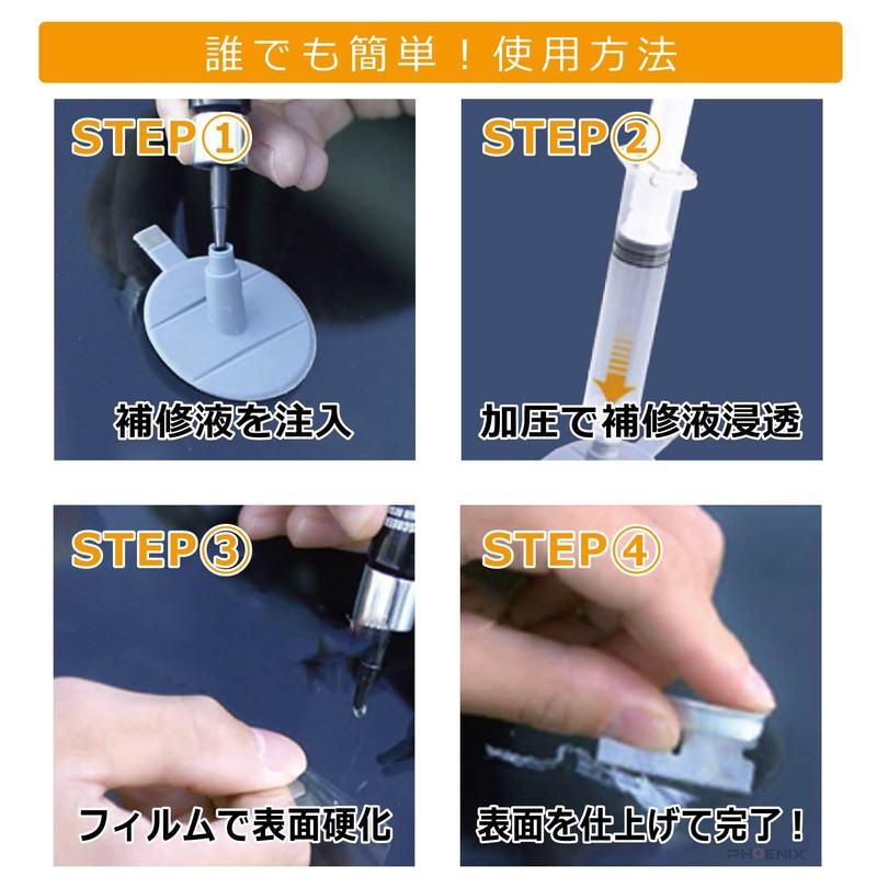 PHOENIX T01 D08 Glass Repair Kit, Improved Version Windshield Stepping Stone Repair Kit, DIY Windows, Cars, Glass, Scratches, Repair, Repair Kit, Japanese Instruction Manual and Video Included