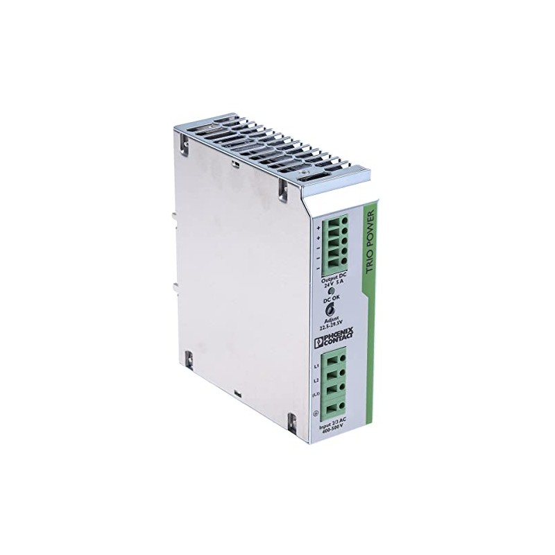 - Phoenix Contact TRIO-PS/3AC/24DC/5 3-phase clocked DIN rail power supply 120W, 400V ac, 24V dc / 5A
