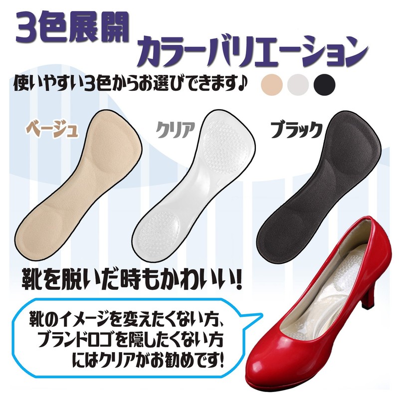 - 3 Colors to Choose from: Beige, Clear, and Black. Available in 3 Colors: Cute even when you remove shoes. Clear is recommended for those who do not want to change the image of their shoes or do not want to hide their brand logo