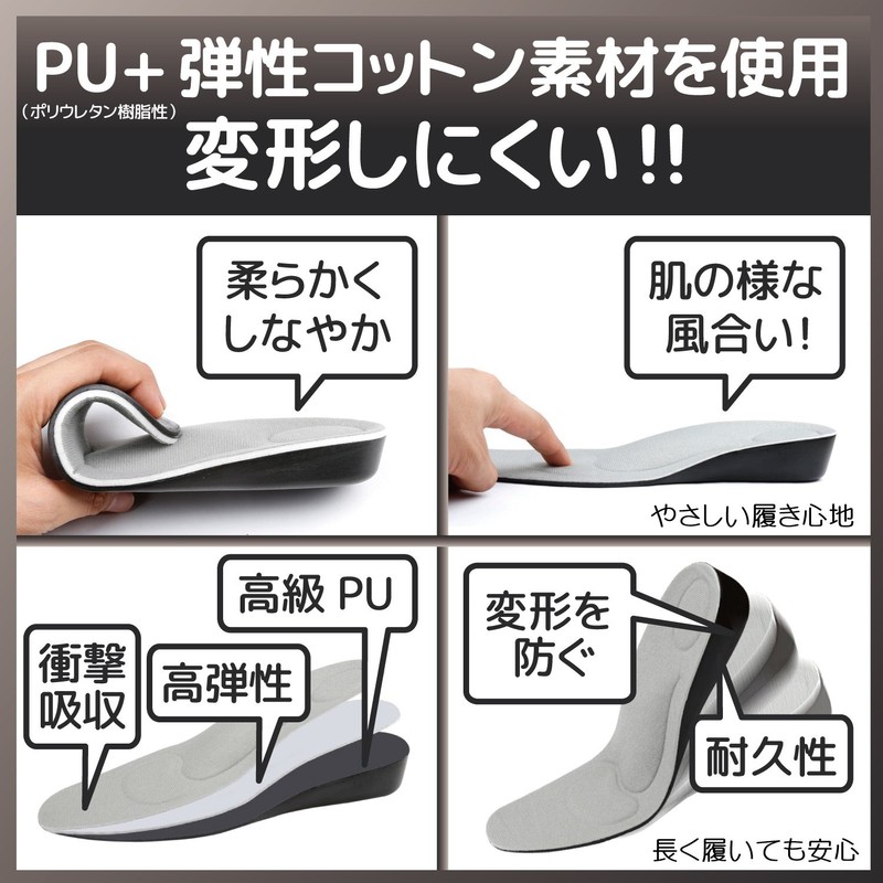 - Slip into the sole to increase your height. Secret insoles for added style. Sweat absorbent, soft and comfortable to help relieve chafing pain. Raises knee position for a more stylish look. This is a secret item that you can coordinate with your style with style