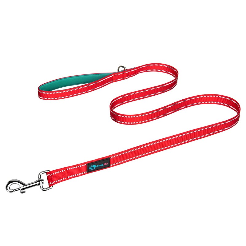 PHOEPET 5 Feet Dog Leash - Dual-Side Reflective - Soft Padded Handle - Fit for Walking, Training or Exploring Hiking, Camping(Red + Dark Green Base)