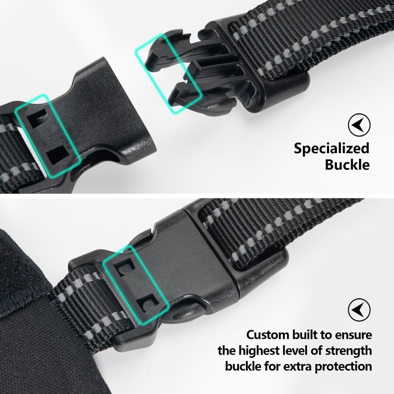 - Easy On / Off: This 3 quick-release buckles system eliminates the over the head issue which some dogs hate. NO need go through dog’s head. This makes it so easy to put this harness on your fur friend and take it off, all done by yourself, without another person's help.