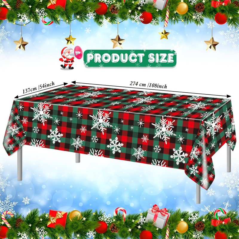 - 3 Pack Christmas Tablecloths for Rectangle Tables: Each Plastic Christmas Tablecloth with a charming design with delicate white Snowflake patterns set against a backdrop of traditional red and green buffalo plaid, which will be an awesome choice for Winter Celebrations, Holiday Gatherings, Snowflake-themed Parties and Christmas Party Supplies & Decorations
