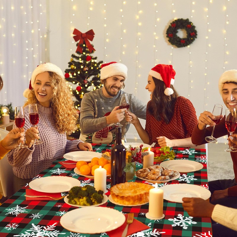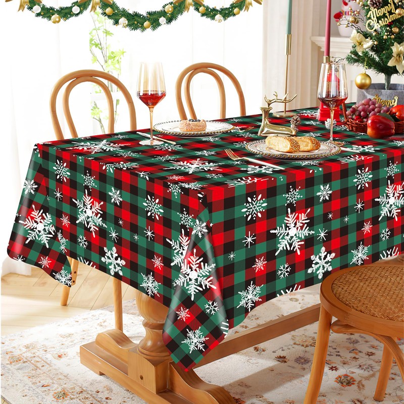 - Red Green Plaid Snowflake Tablecloths Wide application: Buffalo Plaid Table cloths contribute to enhancing the ambiance of your winter holiday and Christmas parties, creating lasting memories for you and your guests. Perfect for a wide range of occasions, like Christmas dinner celebrations, winter parties, holiday gatherings, New Year's dinner soirées, winter wonderland 1st birthday parties, baby showers etc
