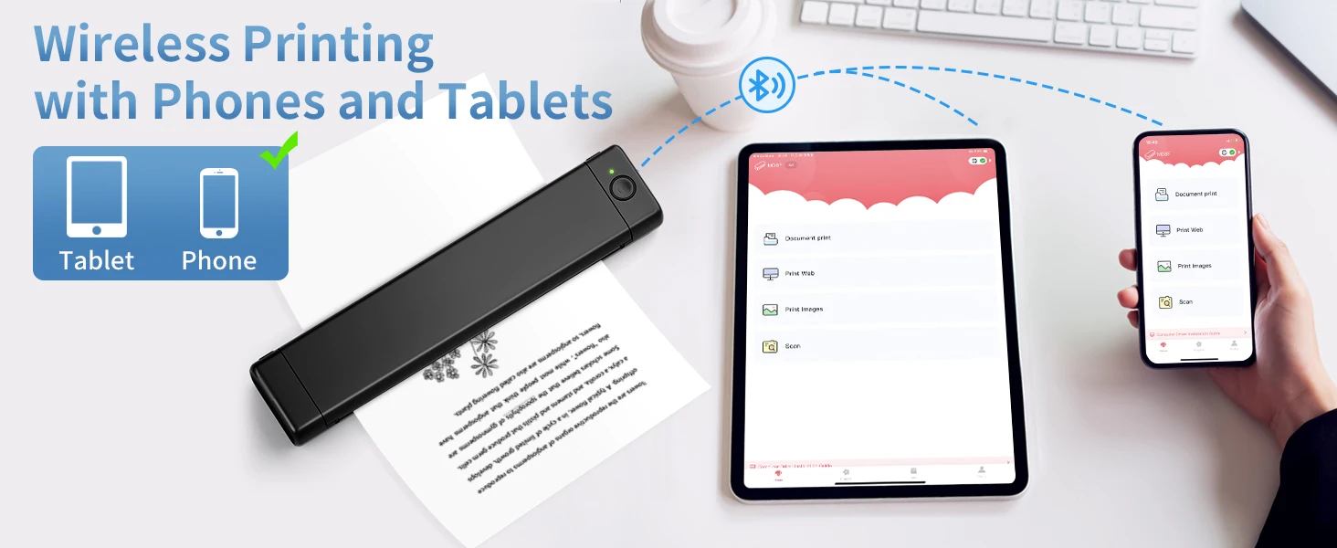[For Android & IOS Phone Users] This travel printer can be connected wirelessly with Android, IOS phone or iPad by Bluetooth. (Specific steps for use can be found in the video, product descriptions and Quick Start Guide.)