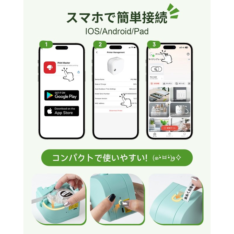 - ORGANIZE WITH CONFIDENCE: P12 Pro mini thermal label printer is versatile and creative so you can easily create stickers and use them for home storage, kitchen organization, gift decoration, garment labeling, office sorting, small business retailers and anywhere you like