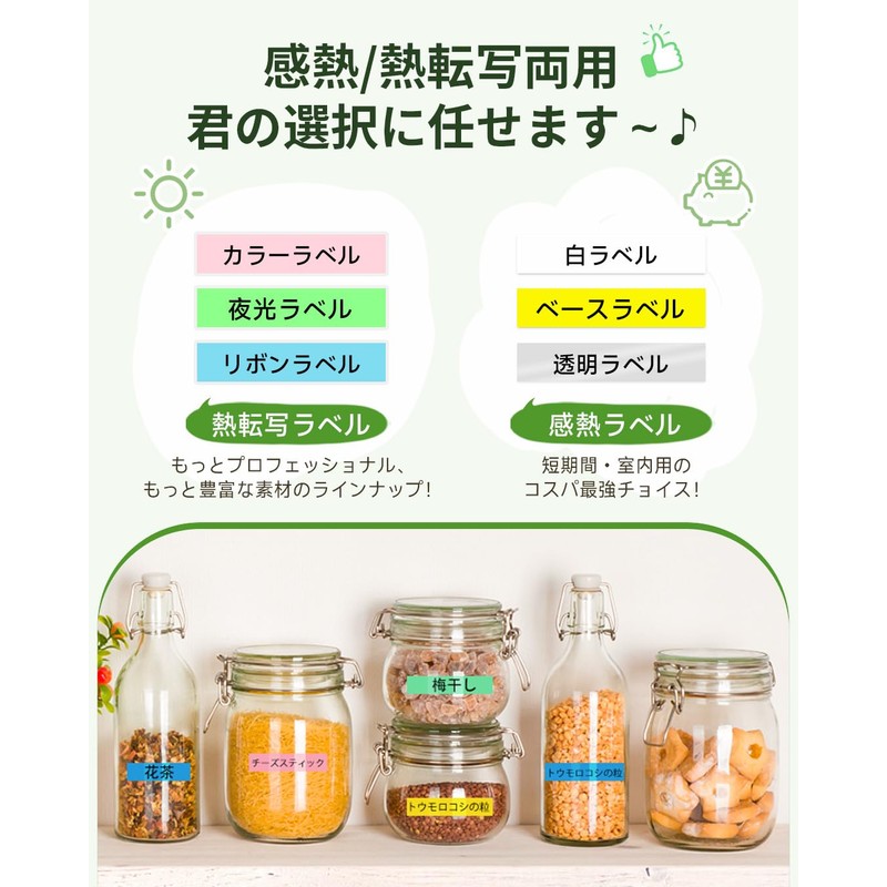 - MULTIPLE LABEL TYPES TO CHOICE: Over 50 color label tapes and 4 materials, economical thermal labels for batch printing, long lasting clear heat transfer labels, and playful hot stamping labels and ribbon labels to print whatever you want!