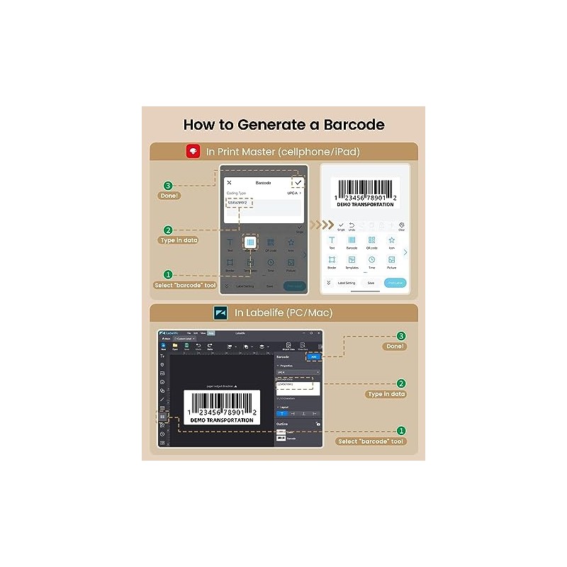- CREATE, EDIT AND PRINT: Download Print Master (iOS 9.0, Android 5.0 and above), intall custom label roll before one-step setup to connect the printer to your device in Print Master, then it's your time to create. Print Master provides a variety of ready-to-use templates for wide usage, thing are lot more easier when you can just type in words. Insert your photos to print them on labels, or use your cellphone as a OCR scanner in the app are different ways to realize your ideas, too
