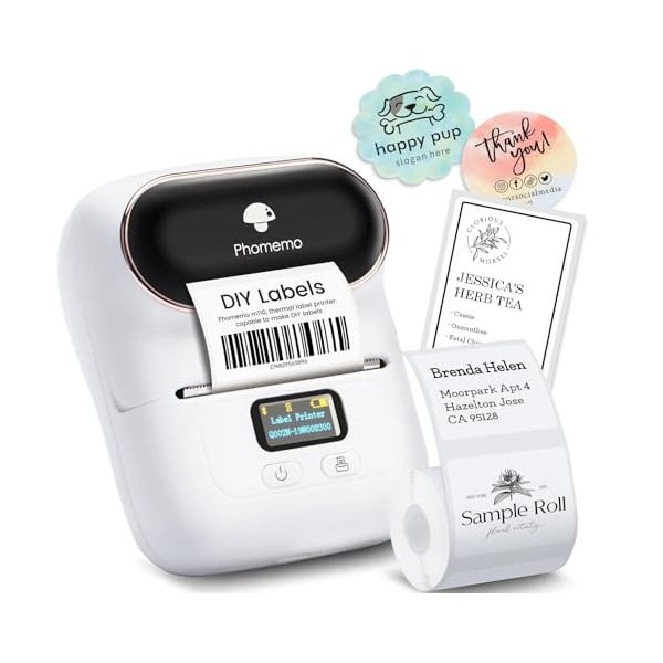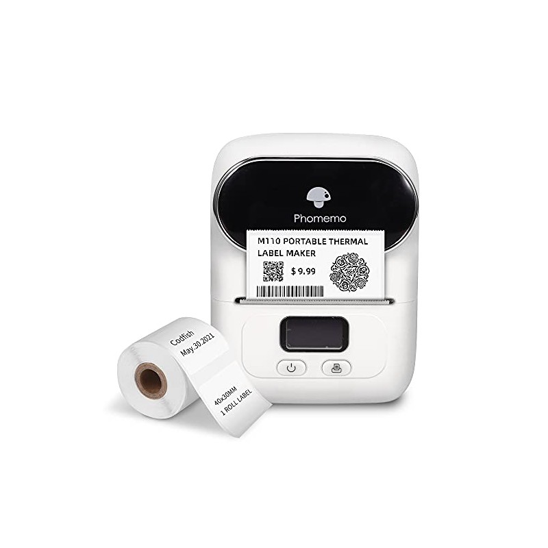 Phomemo Phomemo M110 Portable Wireless Thermal Label Printer, Bluetooth Label Maker Machine for iOS And Android Phone, Barcode Printer for Clothing, Jewellery, Retail, Home, with 1 Roll 40x30mm Label