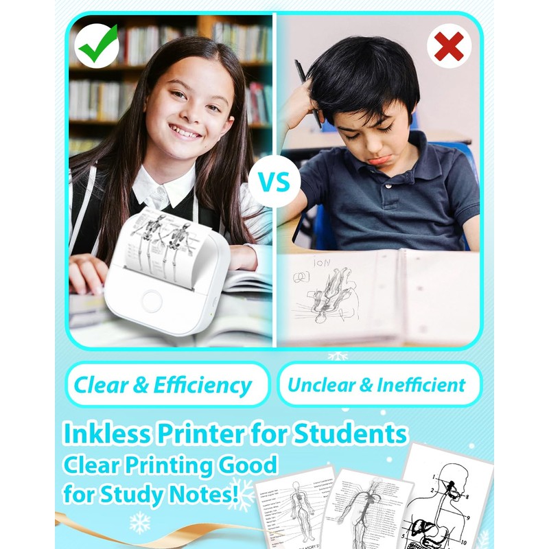 - Mini & Portable Pocket Printer- Print anytime, anywhere. T02 pocket-sized mini printer is designed for ultimate portability. Take it with you to classes, libraries, or coffee shops, and print whenever inspiration strikes. Embrace the convenience of a compact inkless printer