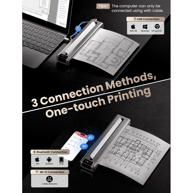- Phomemo Q302 Bluetooth Printer - 【Wifi Connection Upgrade】: Phomemo Q302 bluetooth thermal printer supports Bluetooth, 2.4GHz Wi-Fi, and USB connection methods, especially the new Wi-Fi function, which enables you to print remotely with ease. The multiple connection options make printing more flexible and convenient, without worrying about device incompatibility or network problems. In the busy work, you can send print jobs at any time through your cell phone or computer, without the need to operate the printer in person, saving time and energy. [Note: The computer only supports USB connection.]
