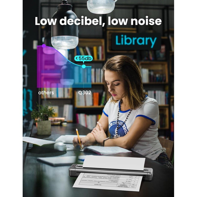 - Phomemo Q302 Thermal Printer - 【Silent Printing Upgrade】: Phomemo Q302 portable thermal printer offer 4 different print sizes for you to choose from: US Letter, A4, B5, A5. The various print sizes can meet the printing needs of different scenarios, whether it is a contract, report or personal documents can be easily dealt with. Phomemo Q302 wireless printer can also do silent printing, as an entrepreneur or businessman, you can use this printer in meetings and other silent occasions, which will bring great convenience to your work