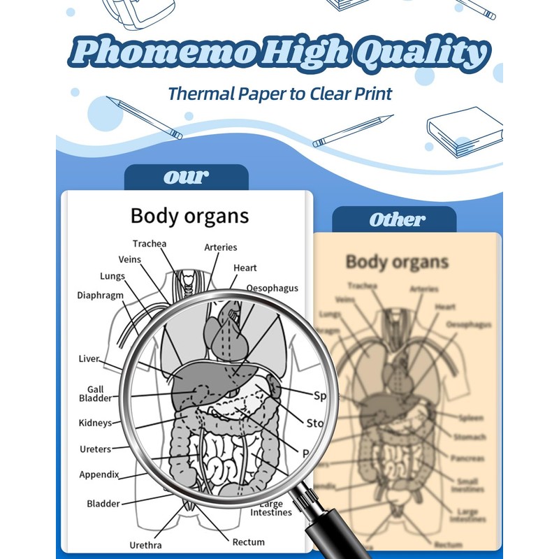 • 【Premium Quality Material】The Phomemo thermal paper is BPA/BPS free, smooth and flat surface printing experience. sturdy and durable and more space-saving