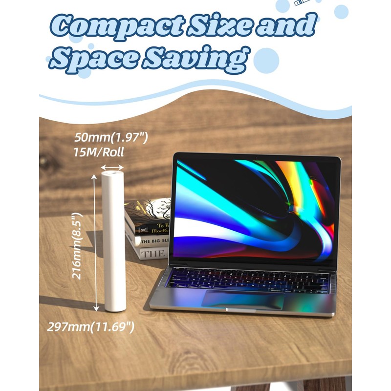• 【Product Details】M08F Rolls Thermal Paper is 1 roll, standardized US Letter Paper Size - 8.5” x 11'', measures 216mm in width and has a length of 15m. Each roll contains 50 sheets. (Please note that the M08F printer and holder are not included)