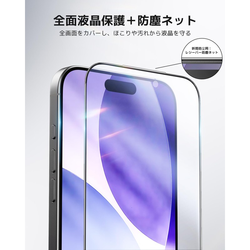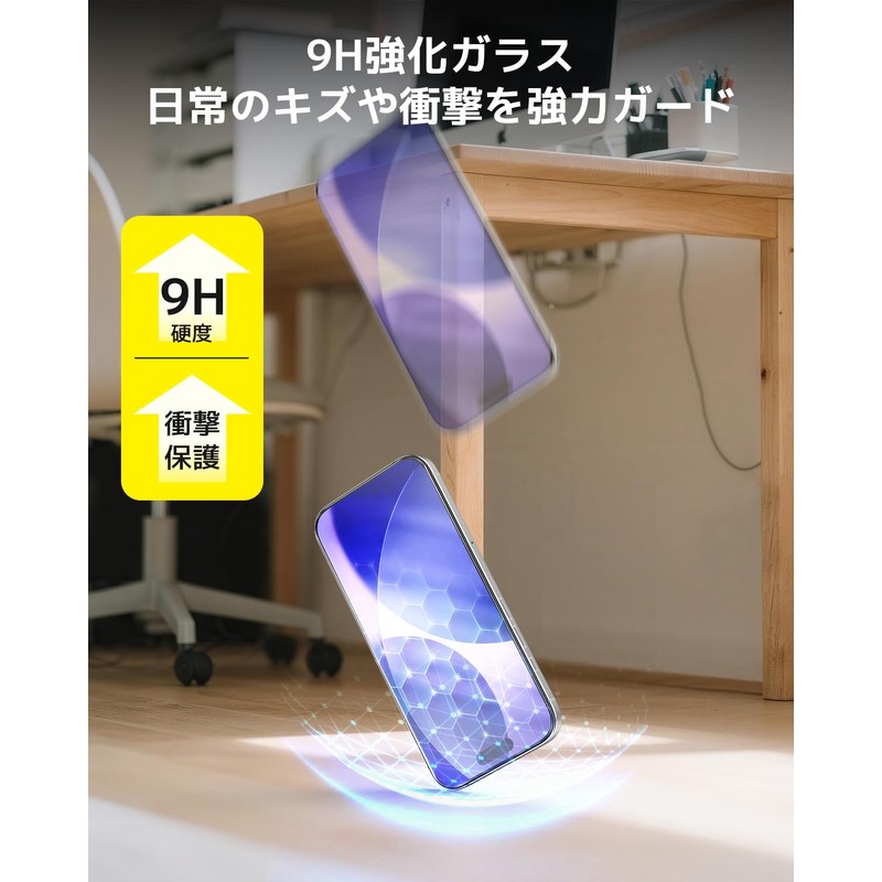 - 【高硬度・飛散防止・防塵ネット保護】硬度9Hの強化ガラスで日常のキズから画面をしっかり守ります。飛散防止加工により、万一割れても破片が飛び散らず安心。さらにレシーバー部分には防塵ネットを搭載し、埃の侵入を防ぎながら、音質はクリアなまま快適に通話できます。