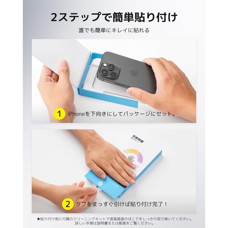 - 【貼り付け簡単・ズレなし】 パッケージがそのまま専用の貼り付けキットに早変わり!「貼りピタBox」を使えば、スマホをセットしてタブを引くだけで、ほこりを防ぎながら位置ズレなく貼り付け可能。初心者でも失敗せず、誰でも簡単にキレイな仕上がりを実現できます。