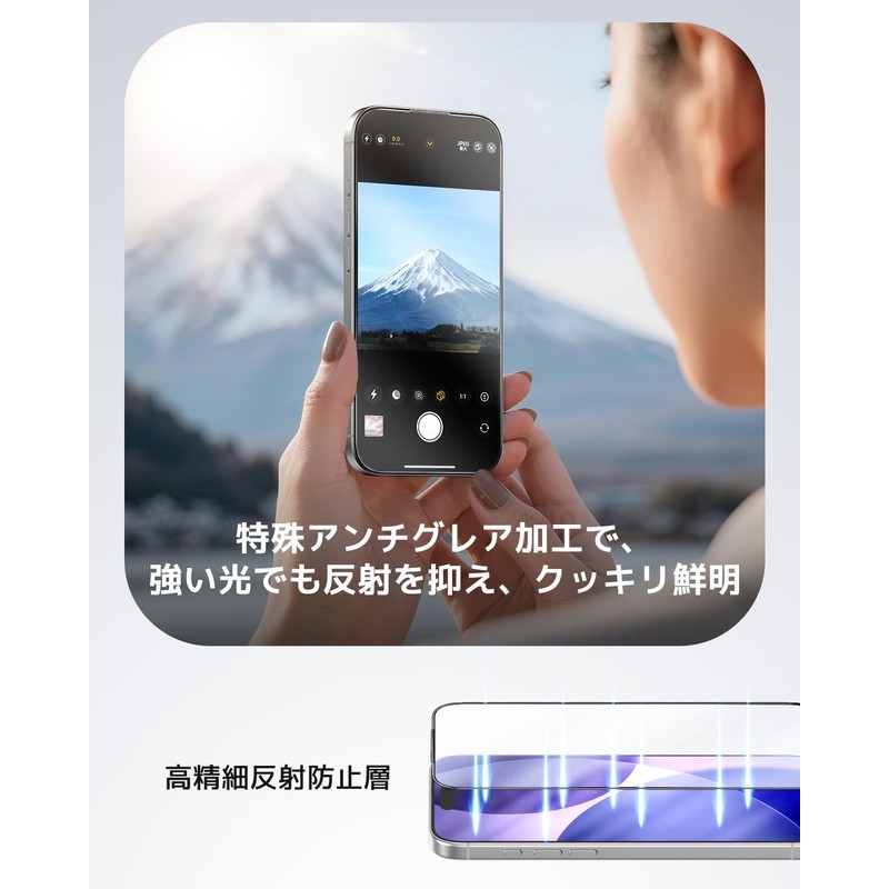 - 【高透過率・目に優しい】直射日光や蛍光灯の反射を抑えつつ、高透過率でクリアな画面を実現。長時間のスマホ操作でも目の負担を軽減し、いつでも美しい映像を快適に楽しめます。