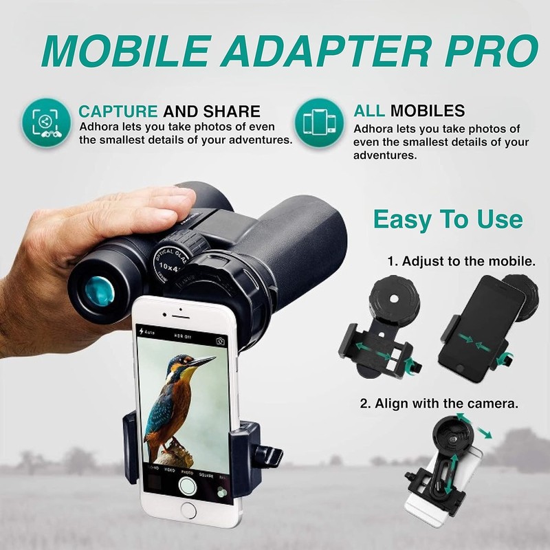 Phone Adapter Pro for Binoculars. Monoculars, Spotting Scopes, Astronomical Telescopes and Microscopes. Use It With Any Smartphone - Ideal for Capturing Your Adventures.