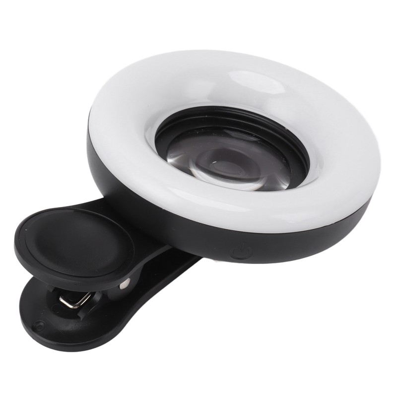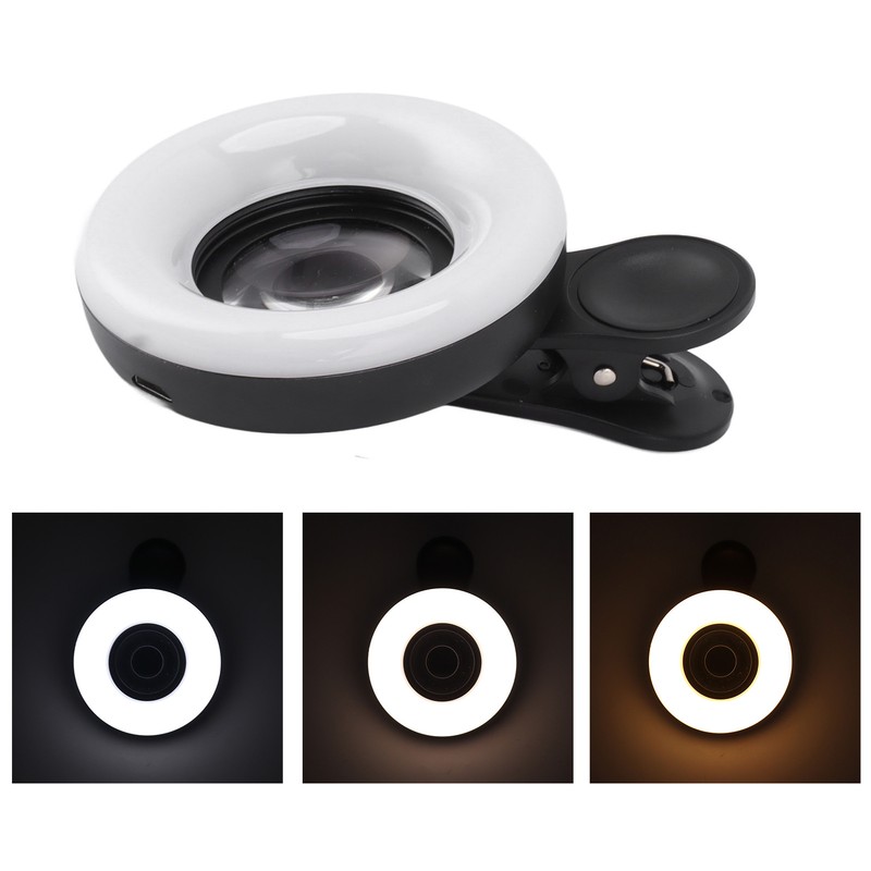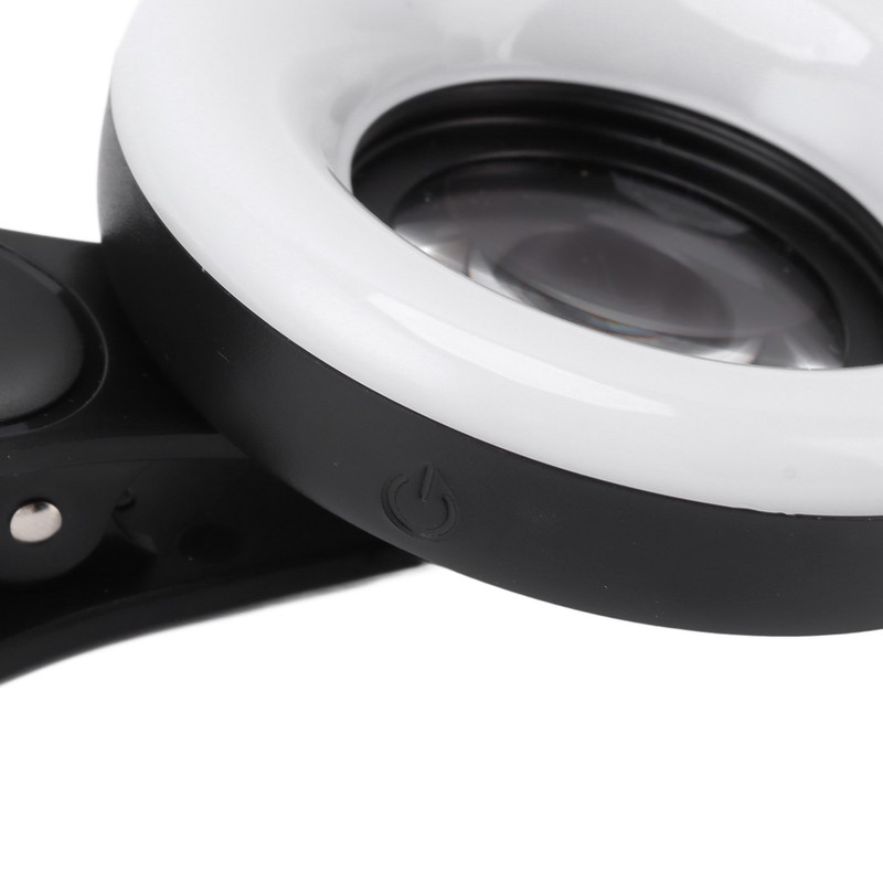 Phone Camera 15X Macro Lens with Mini Clip Ring Light 2800 to 6500K Phone Ring Fill Light Lens for Photography Video Recording Black