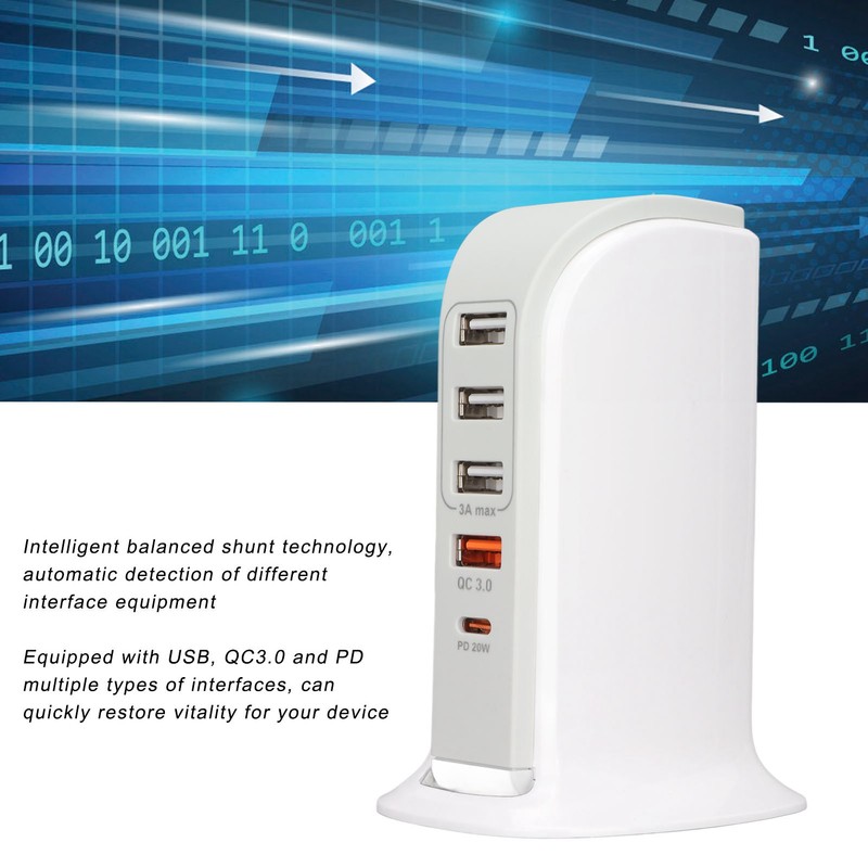 1、Intelligent Function: Intelligent balanced shunt technology, automatic detection of different interface equipment, intelligent distribution of each interface current. 2、High Compatibility: Universal for smart phone, tablet PC, mobile power supply and other devices, able to meet most of your needs for daily using. 3、Multiple Ports: Equipped with USB, QC3.0 and PD multiple types of interfaces, can quickly restore vitality for your device, even charging several devices at once is allowed. 4、Suitable for Travel: Convenient and stylish travel charger that can quickly charge your phone battery. Give your cell phone battery high saturation and high power. 5、Quality Material: The charger is equivalent to a voltage conversion station, which generates more or less heat in the charging process, which is normal. High temperature resistant fire protection materials, please use with confidence.