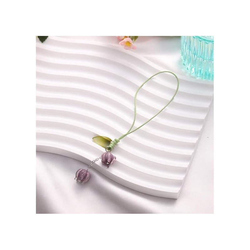 Phone Charm Flower Accessories Creative Tulip Flower Keyring Cute String Strap keychain for Women (Purple, One size)