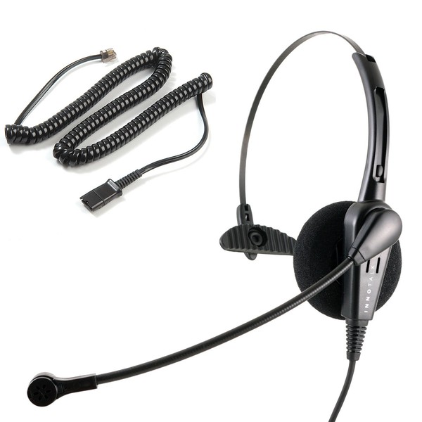 INNOTALK Classic Mono Office Phone Headset & QD Pigtail Adapter with Noise-Canceling Mic for Polycom, Mitel, and Many Models' Desk Phone