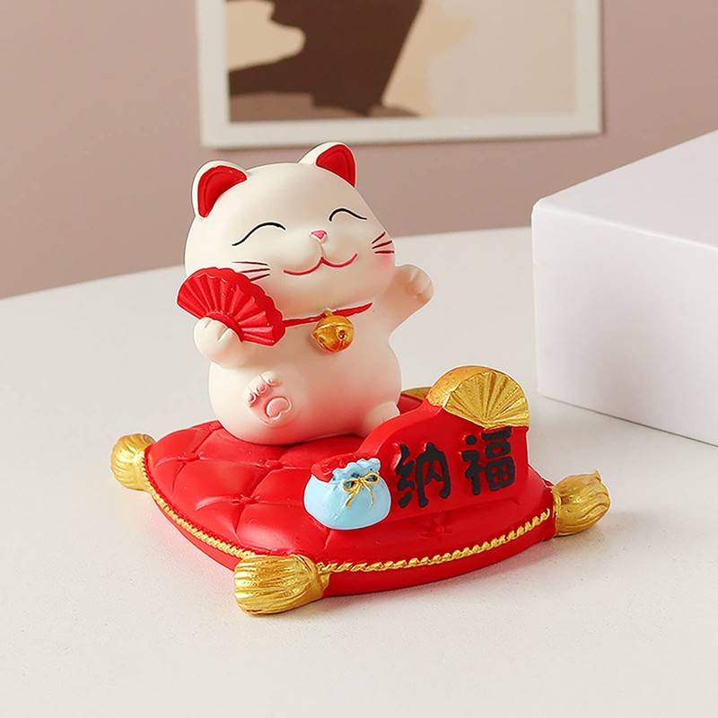 Phone Holder, Cute Decorative Resin Functional Cat Smartphone Stand for Desktop for Car for Home (Good Luck)