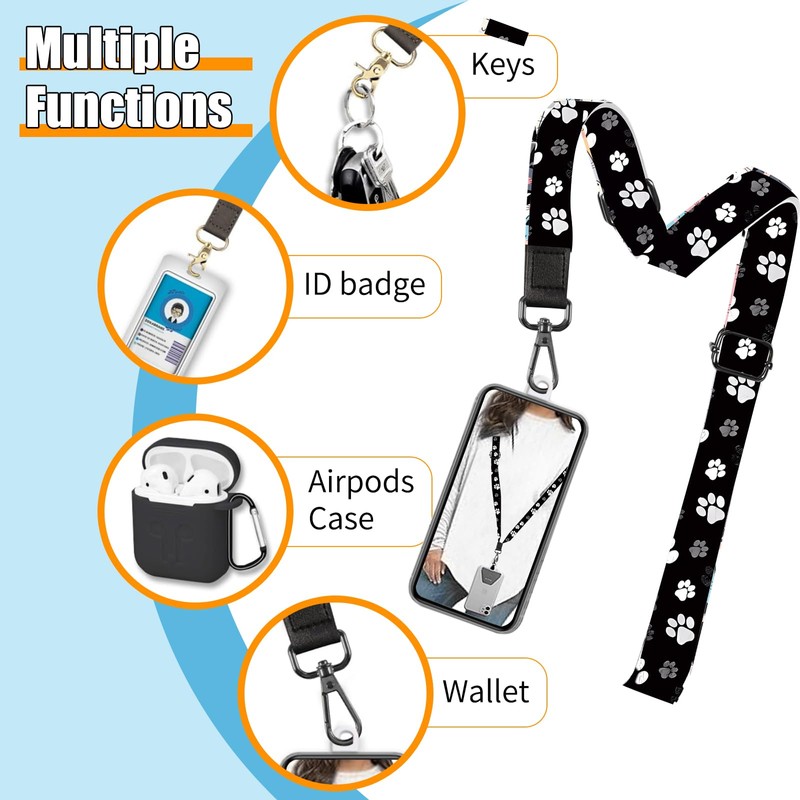 - 【Cute Phone Lanyard Set】With various special funny design: Dog Paw. Phone strap will keep your phone safe and within your sight, you can choose the one that matches your personality best. The phone lanyard set includes 1x adjustable crossbody cellphone lanyard, 1x wrist strap, 2x phone tether tabs and 2x key rings.