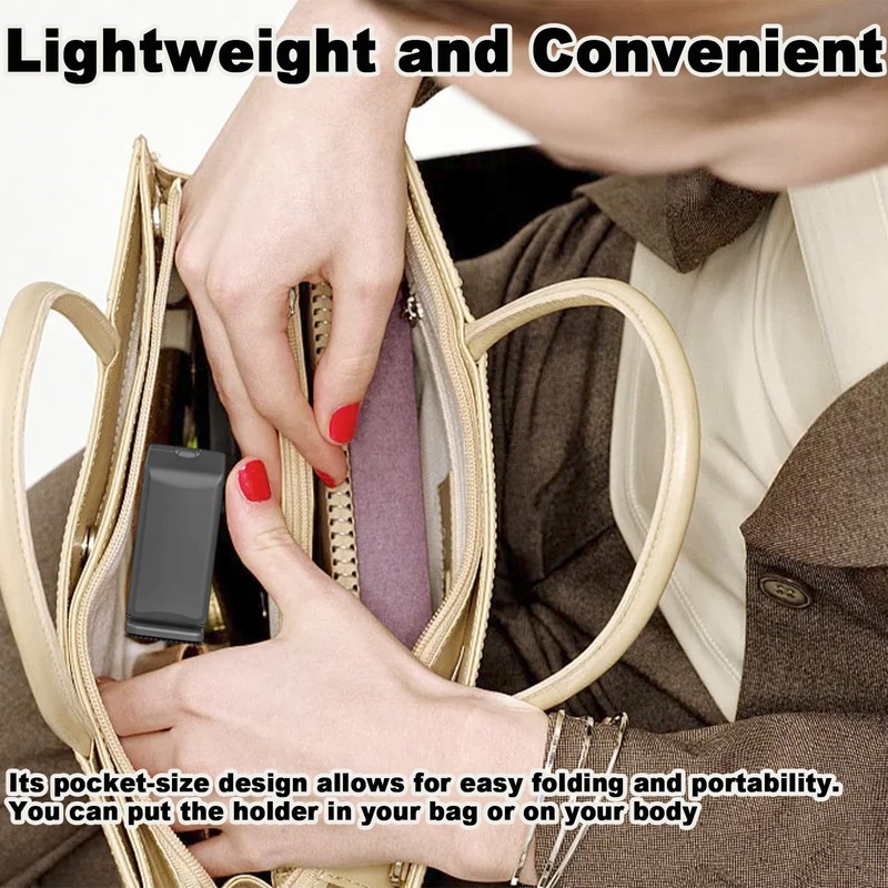 - Compact Holder - Small pack size only 9 x 3.5 x 3.5 cm. Its pocket-size design allows for easy folding and portability. You can put the holder in your bag or on your body