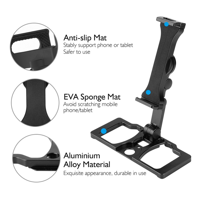 1、Suitable for DJI Mavic 2 / Mavic PRO / Mavic Air / Spark remote controller 2、The holder is compatible with many devices, such as phone and tablet, which brings you much fun 3、Optional holder for DJI CrystalSky high brightness monitor 4、It is adjustable and you can adjust the angle according to individual needs 5、Aluminium alloy material is solid and ensures the safety of phone or tablet