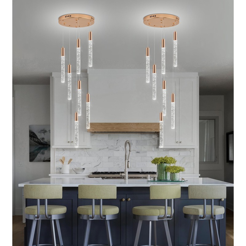 - MODERN CHANDELIER: Gorgeous K9 bubble crystal column and Premium aluminum lampshade. Simple design line, High-polished Gold finish, Sparlking and clear crystal could create a superior and classy atmosphere in your house