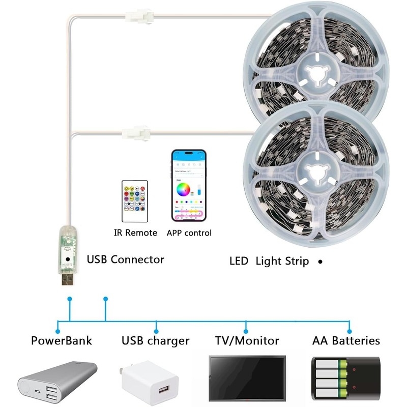 - Dynamic RGB IC Control: Experience vibrant lighting effects with the RGB IC control color mode, allowing for dynamic color changes and patterns to suit any mood or occasion (5m two roll with 180 LEDS).