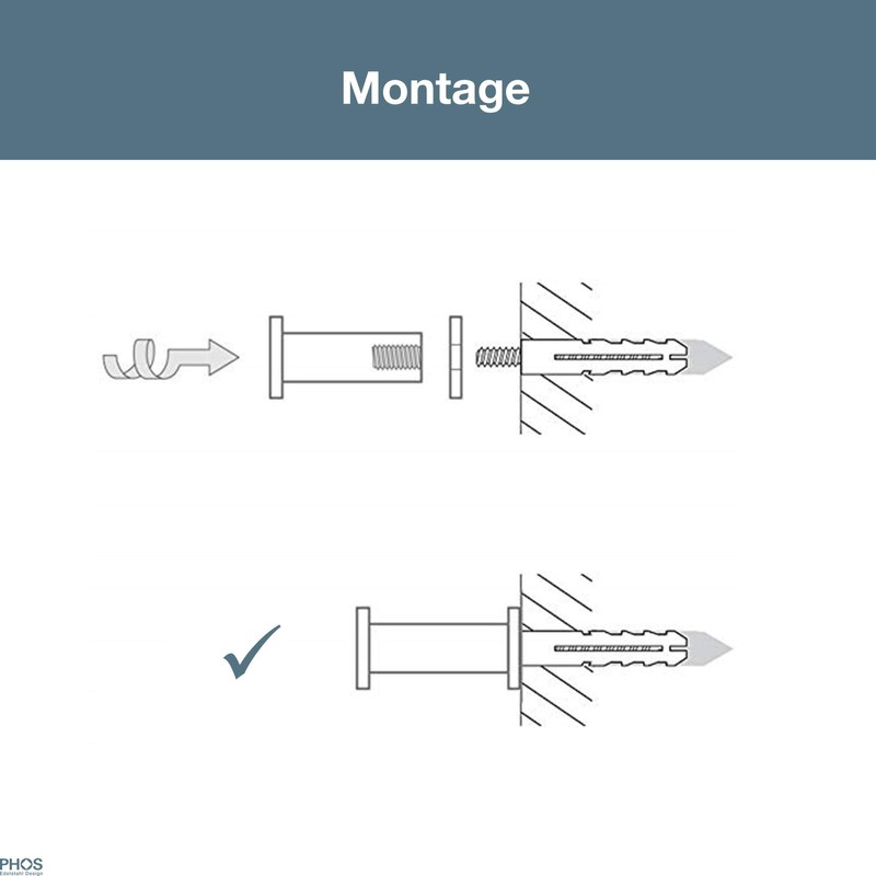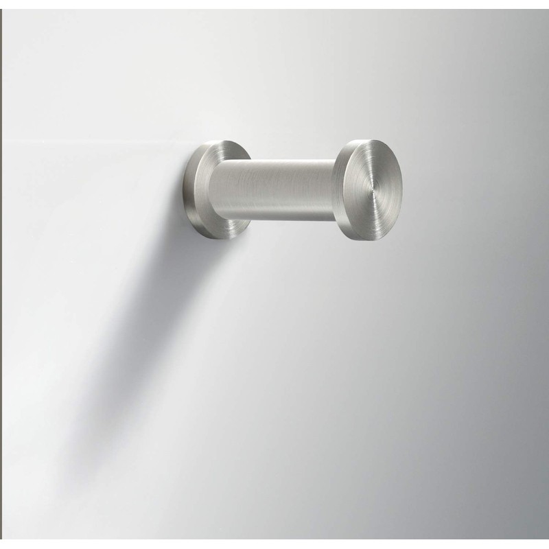 - Installation: the kitchen hook / The bathrobe hook is mounted via a concealed screw connection. The hook is screwed onto a grub screw, which is no longer visible after installation. This creates a "floating effect" of the key hook on the wall. The complete mounting material is included.