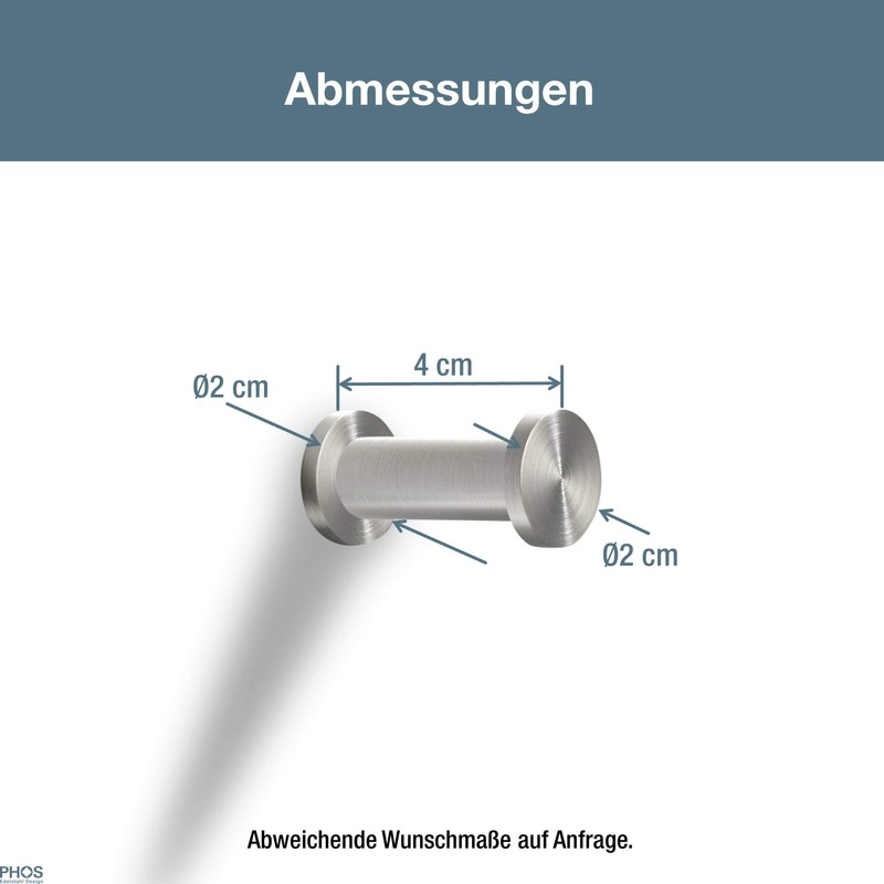 PHOS Design Wall Hook, Solid Stainless Steel, Diameter 2 x 4 cm, Matt Polished, Concealed Screw Connection, Coat Hooks, Towel Hooks, Bathrobe Hooks, Kitchen Hooks, Key Hooks, Coat Hooks