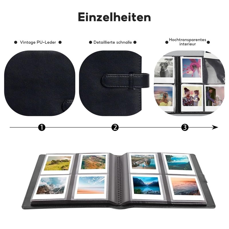 - High-quality materials: the 3 inch photo album is made of PVC and PU material, robust and durable for long use. Album size: 20.6 x 17 x 2.6 cm
