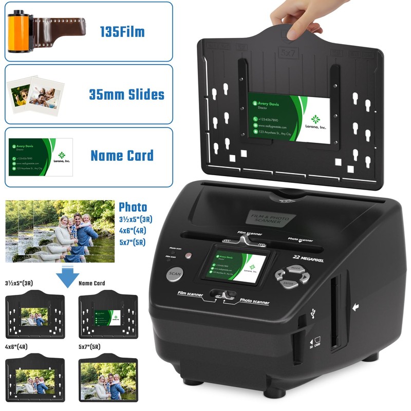Photo and Slide Scanner with 2.4” LCD Screen, Convert Negatives & Slides 35mm/135 Film, Photo(3R,4R,5R), Business Card to 22MP JPEG Digital Photos, 4GB SD Card Included