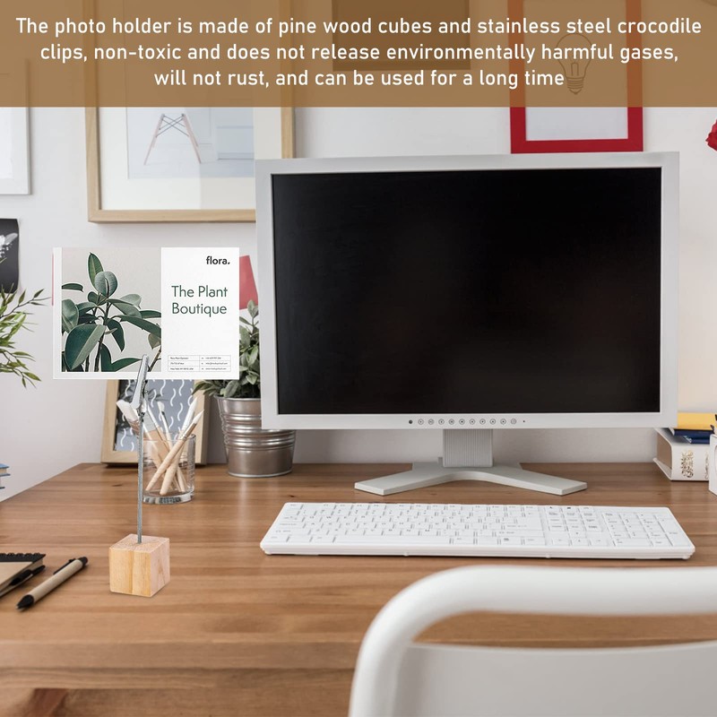 - Perfect size: memo clip holder pine base size: 2.5 x 2.5 cm / 0.98 x 0.98 inches, height of crocodile clips photo holder: 11.5 cm, easy to replace, small space requirement, more cost-effective than photo frame.