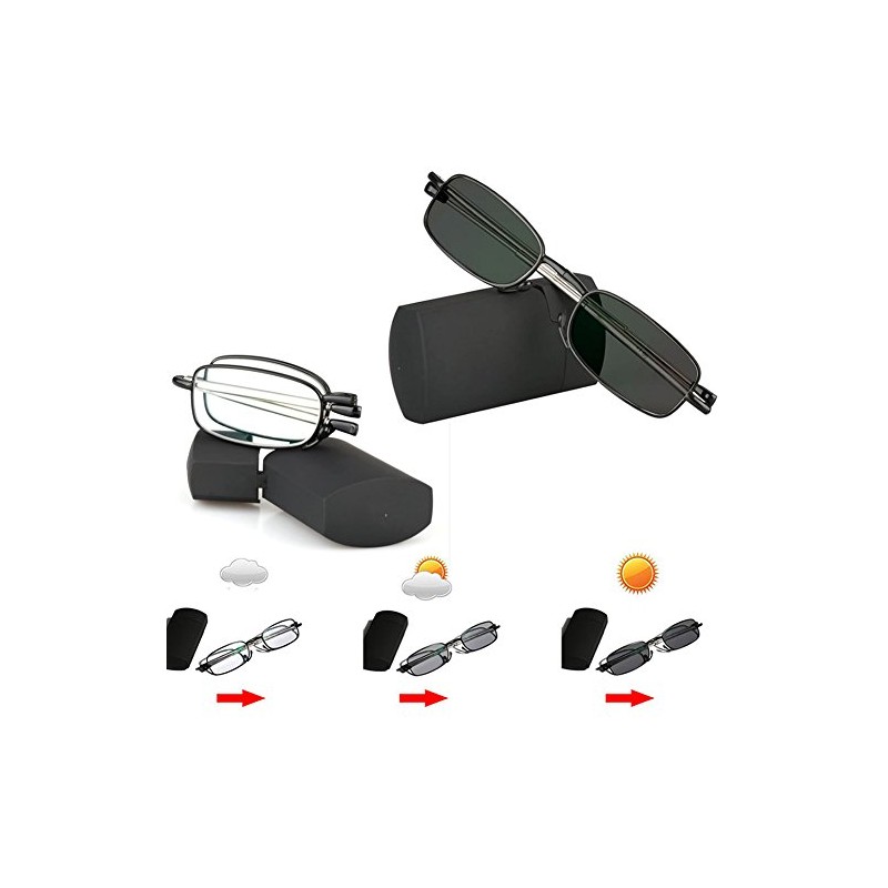 - Photochromic + Readers Compact Folding Glasses Reading Change To Gray On Sun