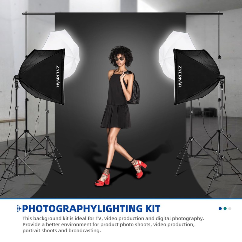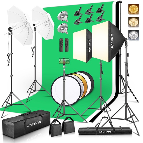 Photography Lighting kit with Backdrops, 8.5x10ft Backdrop Stands, Zyernar LED Bulbs Umbrella Softbox Continuous Lighting, Photo Studio Equipment for Video Shoot